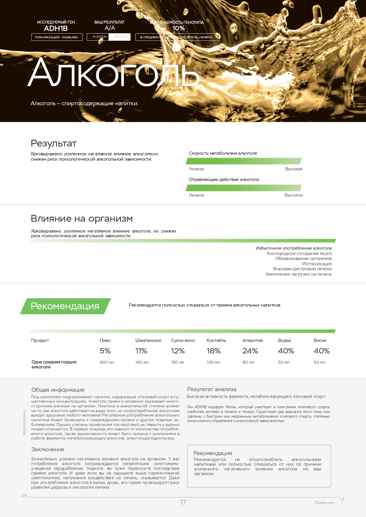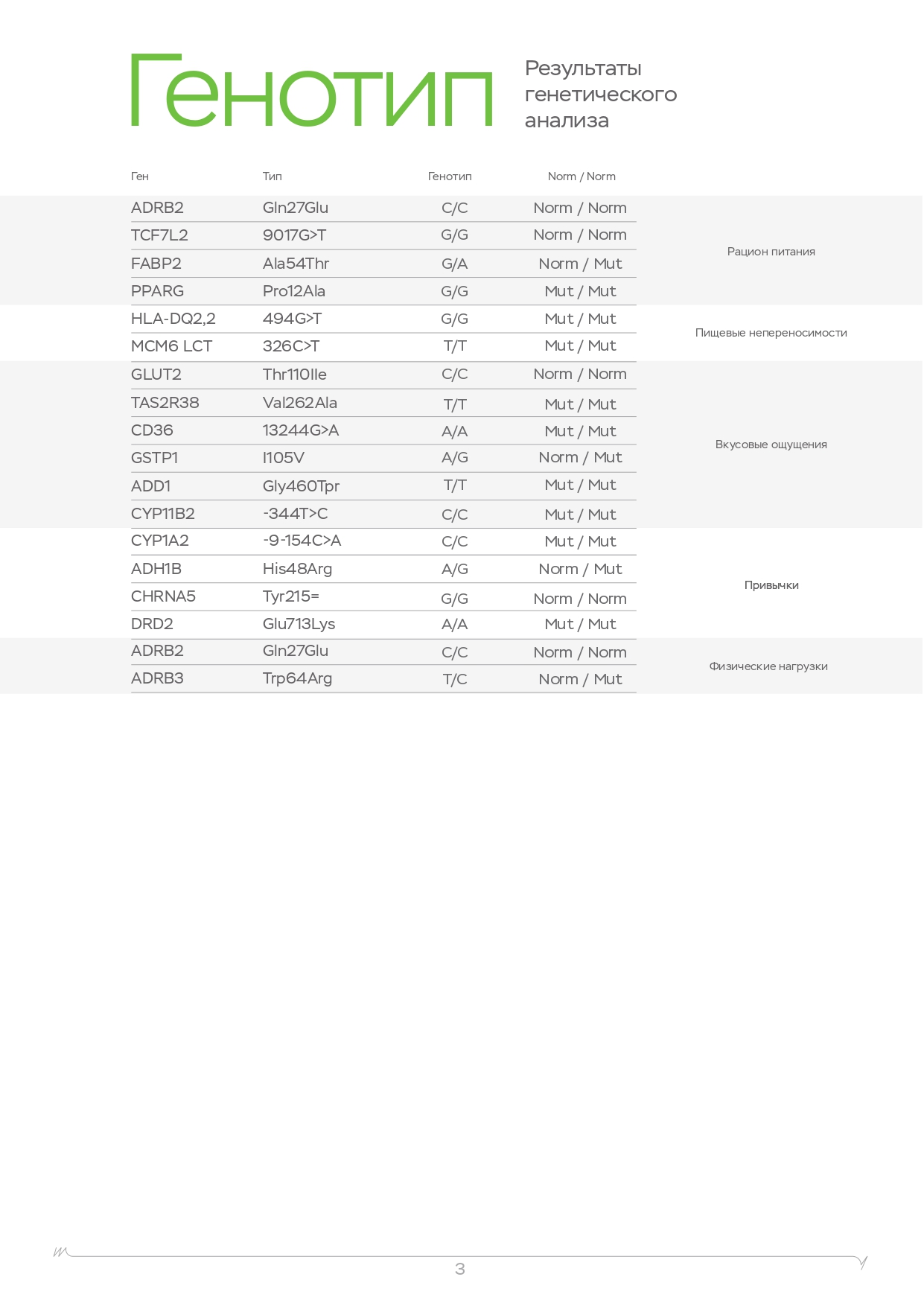 Рацион питания Метаболизм алкоголя Метаболизм кофеина Физическая нагрузка Непереносимости Вкусовые ощущения Никотин Психологические зависимости Пищевое поведение Потребность в витаминах Уровень холестерина Спортивный потенциал | Рацион питания Метаболизм алкоголя Метаболизм кофеина Физическая нагрузка Непереносимости Вкусовые ощущения Никотин Психологические зависимости Пищевое поведение Потребность в витаминах Уровень холестерина Спортивный потенциал | Рацион питания Метаболизм алкоголя Метаболизм кофеина Физическая нагрузка Непереносимости Вкусовые ощущения Никотин Психологические зависимости Пищевое поведение Потребность в витаминах Уровень холестерина Спортивный потенциал |