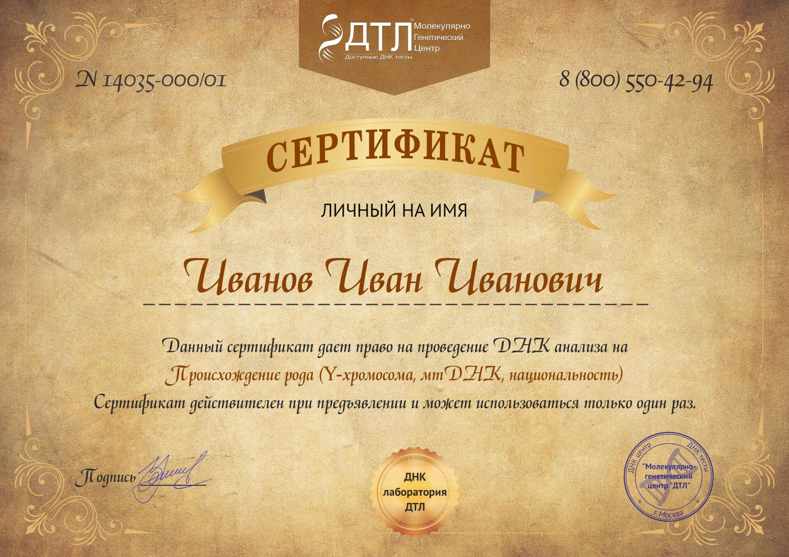 Этот уникальный генетический анализ позволит узнать всё о вашей ДНК-генеалогии. Мы поможем воссоздать ваше семейное древо, узнать, какие предки были в вашем роде, какая кровь течет в вас и ваших близких. Возможно, вы обнаружите, что происходите от славян или кочевых племен — ответы могут быть удивительными и интересными.