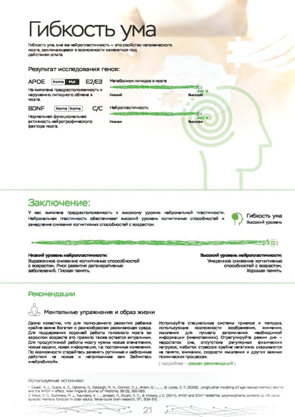 Нейрогенетика изучает влияние генов на работу нервной системы. Данное исследование ДНК поможет провести индивидуальный анализ вашего психоэмоционального состояния, увеличить продуктивность умственного и физического труда.